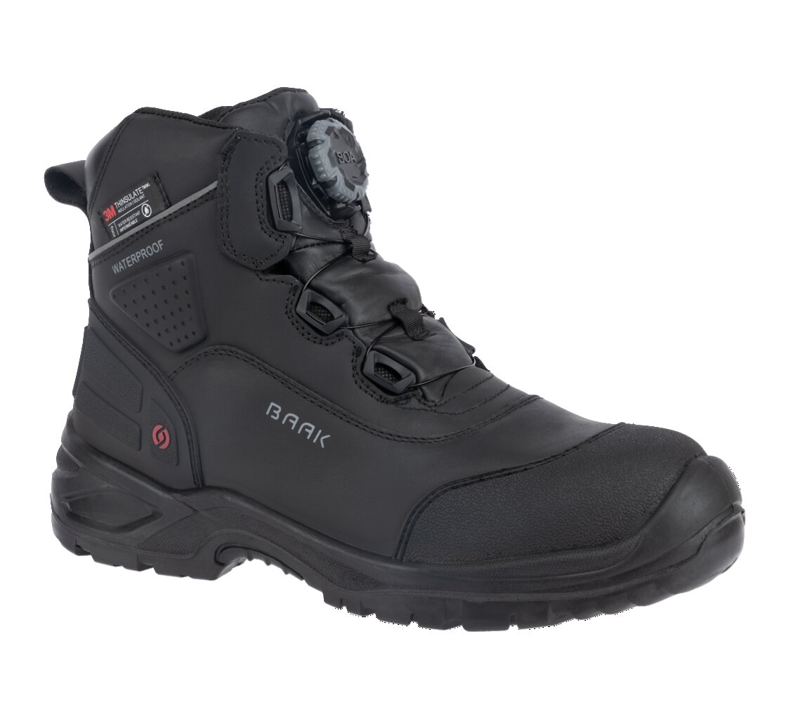 Sicherheitsstiefel Mav; Art. 217013; DIN DIN EN ISO 20345:2024 S7S CI FO SR ESD; DGUV Regel 112-191; Glattleder; 3M Thinsulate®200 Schaft; BAAK®dryMembrane; Boa®M4; Thermostep Einlegesohle; Baak®Go&Relax System; Composite-Flexkappe; Baak NeoShield Durchtrittschutz; Zwischensohle: PU; PU-Laufsohle; Gr. 39-48; Weite 13