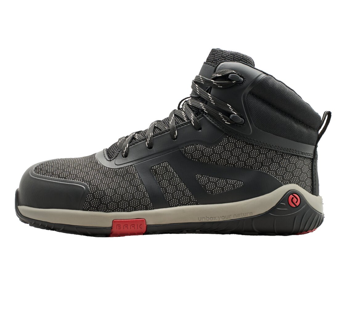 Barfuß-Sicherheitsstiefel „Pegasus“, ART. 226003; DIN DIN EN ISO 20345:2024 S3S FO HRO SR ESD; Schaft aus Textilmaterial; (40% recycelt) Funktionstextilfutter (zu 100% recycelt); Baak Barefoot Zero-Decksohle; Baak® Go&Relax-System zum fußgerechten Abknicken; EVA/Gummi-Sohle mit Baak-Flexzone und H-Kopplungselement; Baak Aluminum Flexkappe; Größe 36-48 / 240mm-320mm.