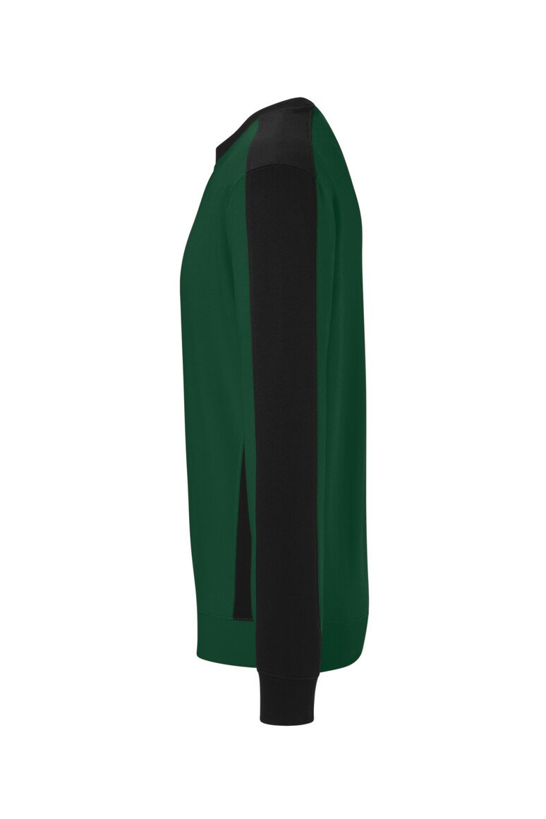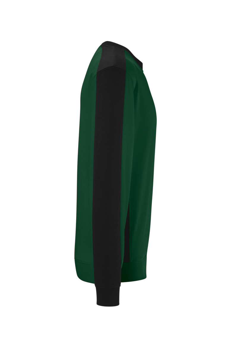 Besonders strapazierfähiges Sweatshirt mit Einsätzen in Kontrastfarbe Schwarz an den Seiten, Schultern und Ärmeln, sowie kontrastfarbigen, gerippten Hals- und Ärmelbündchen (Schwarz: Kontrast in Farbe Karbongrau). Leasingkoller zur einfachen Kennzeichnung in der gewerblichen Wäscherei und Aufhängebänder im Saum. Mittelschweres Sweatmaterial aus MIKRALINAR® ECO, dem HAKRO Performance-Materialmix aus Baumwolle und GRS-zertifiziertem, recyceltem Polyester. Innenseite nicht angeraut (French Terry). Formstabile, Elasthan-verstärkte Bündchen. Normale Passform: Regular Fit.