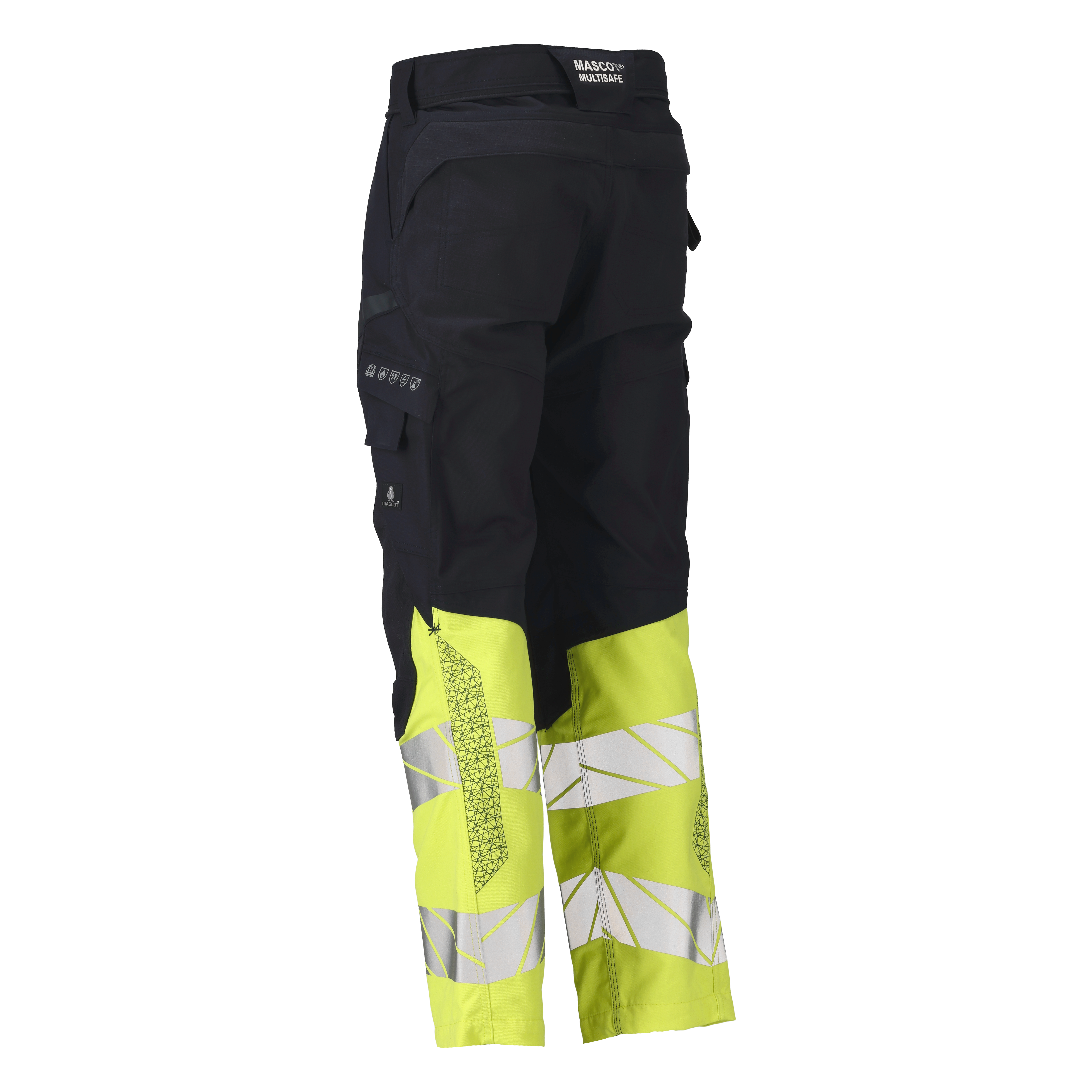 Zweifarbig. Fluoreszierende Kontrastfarbe und mit Reflexen. Antistatisch, flammhemmend und mit Säureschutz. Schützt bei Lichtbögen. Teile des Produktes sind aus Stretchstoff. Vorbereitet für die Hängetaschen mit Click Pocket System. Zweifache Kappnähte an den Beinen und im Schritt. Hosenbeine sind ergonomisch geformt. Gürtelschlaufen. Verdeckter Knopfverschluss. Hosenschlitz mit Reißverschluss. Vordertaschen. Gesäßtaschen, verstärkt und mit Patte. Zollstocktasche mit Patte, verstärkt. Schenkeltasche mit Handyfach, Patte und verdecktem Druckknopf und integriertem ID-Kartenhalter. Knietaschen aus CORDURA®-Gewebe, höhenregulierbar. Die Schrittlänge kann um 3 cm verlängert werden, indem die rote Naht innen am Beinabschluss aufgetrennt wird. Mit Druckeffekten.