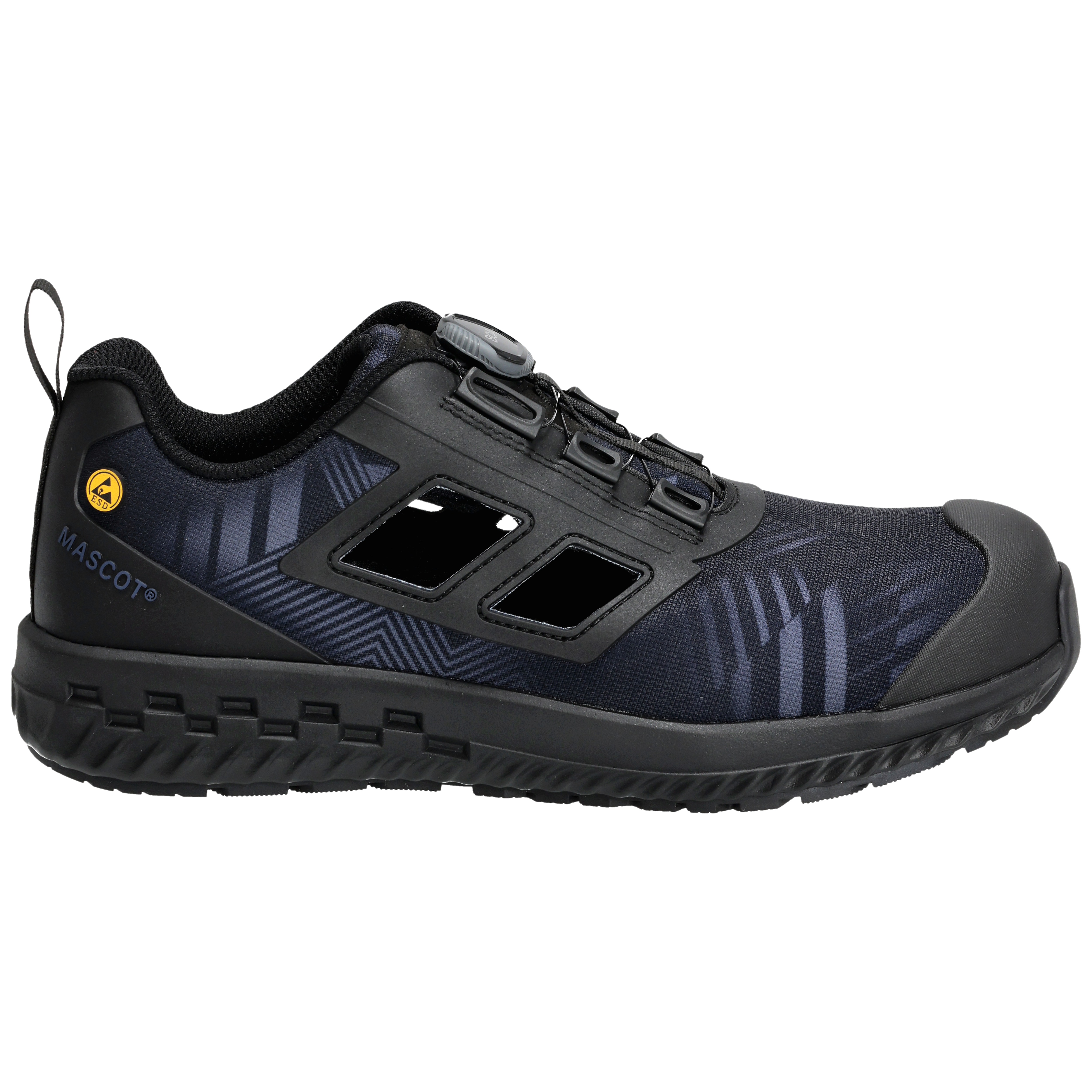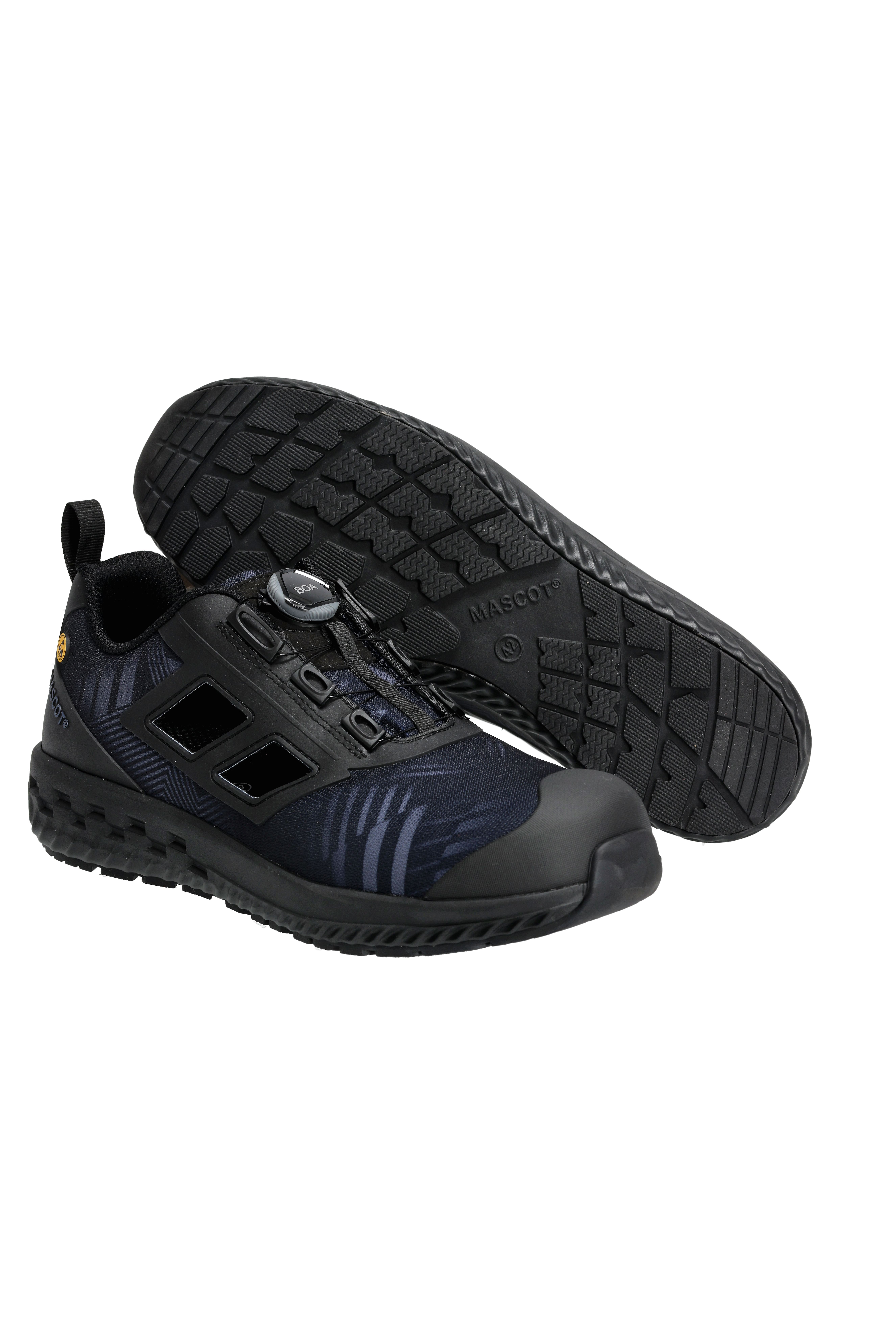 Der vordere Teil des Schuhs ist äusserst flexibel. Obermaterial aus strapazierfähigem Textil. Das Obermaterial ist atmungsaktiv und leitet Feuchtigkeit und Wärme von den Füßen ab. Schließt und öffnet mit BOA® Fit System, einem System aus Drehknopf, Seil und Senkelführungen. Zehenschutzkappe aus Komposit. Nageldurchtrittschutz aus Spezialtextil. Stoßabsorbierende, weiche und flexible Einlegesohle. Einlegesohlen sind auswechselbar. Zwischensohle aus Phylon. Geeignet für knieende Arbeiten. Laufsohle aus Gummi, extrem rutschhemmend. Sohle ist öl- und benzinbeständig. ESD geprüft nach EN IEC 61340-4-3: 2018, EN 61340-5-1: 2016.